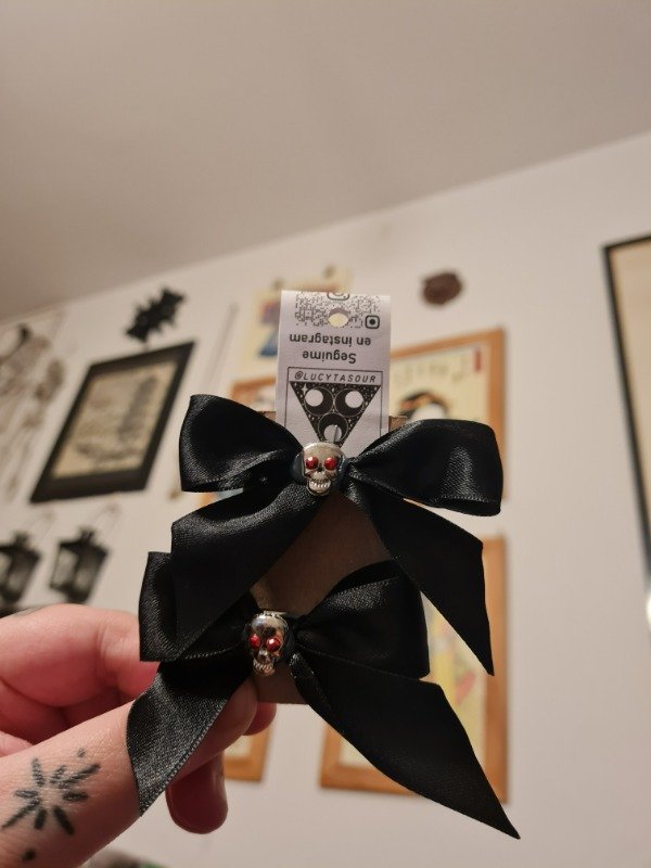Hebillas con moños de razo y dije metalico. Hebillas tipo cocodrilo.