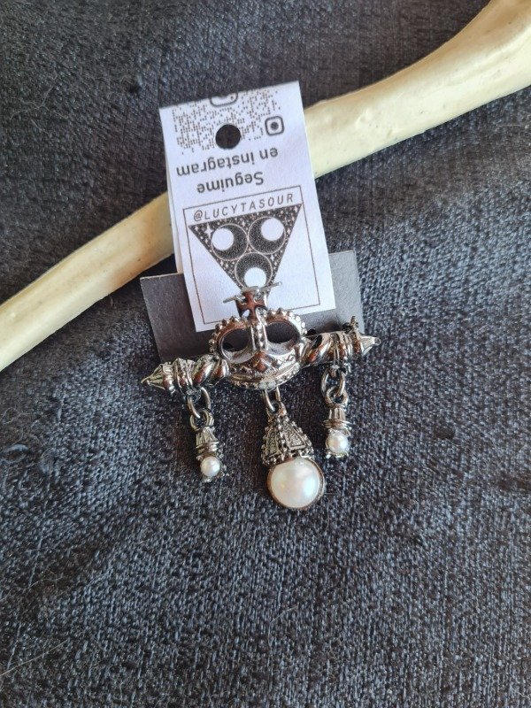 Prendedor de metal con perlas, acabado cromado brillante