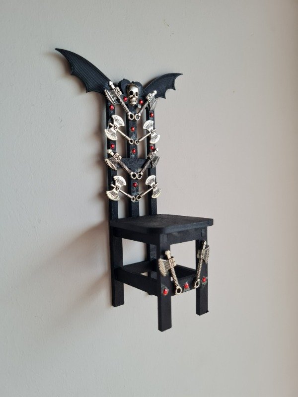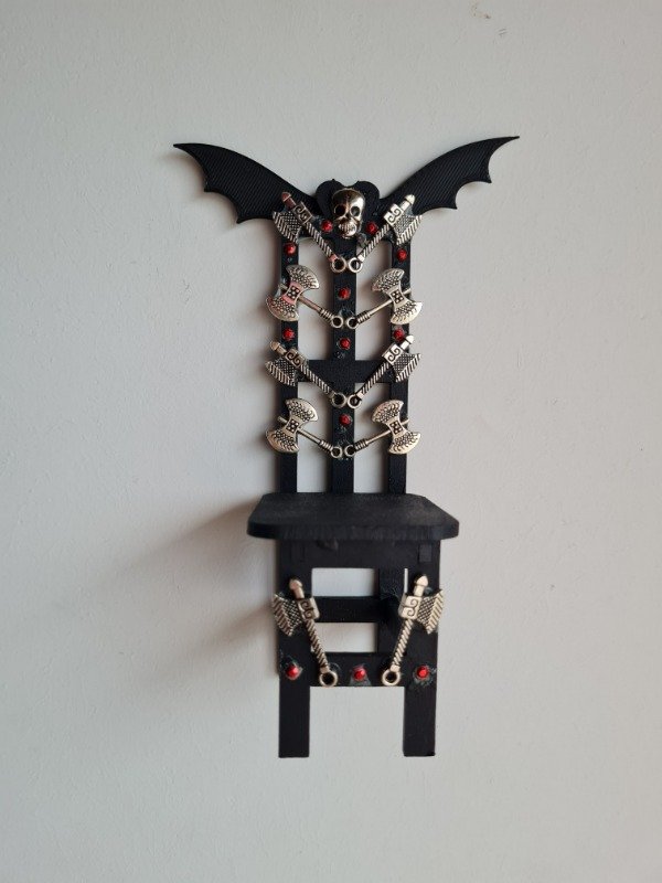 Silla de madera customizada con apliques metalicos e impresos en 3D
