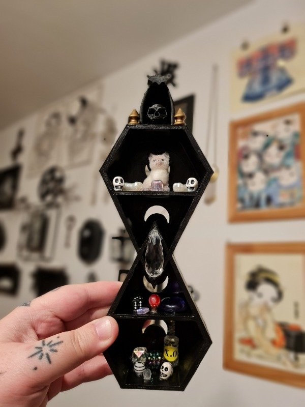 Mini mueble impreso en 3D, con base de madera. Todos los accesorios estan pegados.